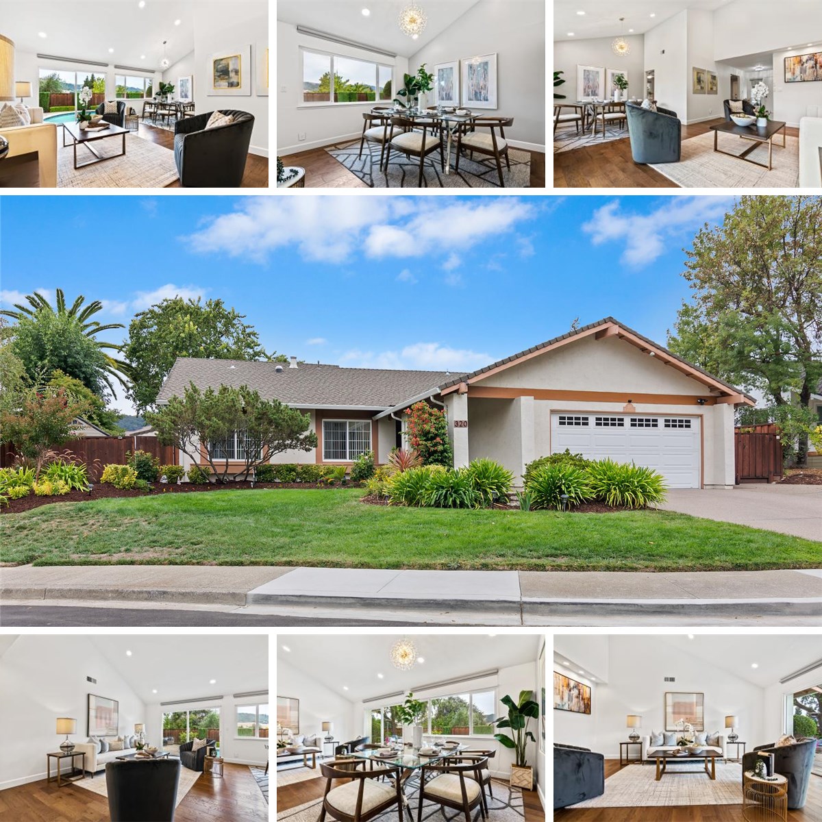 Prime location on a cul-de-sac, views, single story and beautifully updated inside and out. Open floor plan with vaulted ceilings, modernized kitchen with light cabinets, granite counters and stainless steel appliances. Formal dining and living rooms provide that much sought after extra space. Hardwood flooring throughout, custom millwork and automated window coverings. Three bedrooms, plus a separate outdoor office. A primary suite that includes dual sinks, a walk in closet and a large shower. Two other spacious bedrooms share a hall bath with a tub, shower.